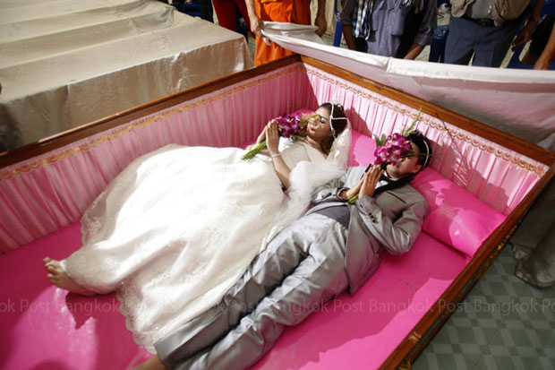Pictures: bride and groom celebrate valentine's day wedding in coffins. Married happily couples imom habits reasons divorce